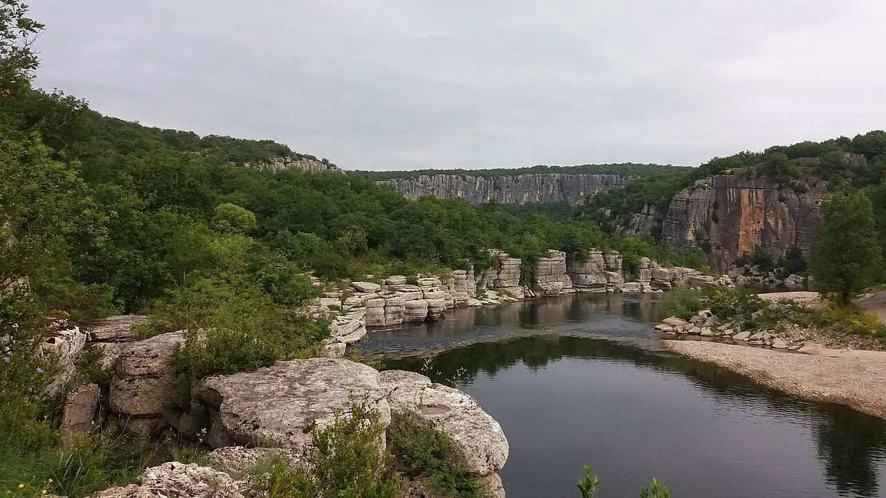 Le Cirque de Gens est un amphitheatre naturel forme par les falaises calcaires pres de Chauzon en Ardeche meridionale. Ce cirque en fer a cheval presente des parois verticales de plusieurs dizaines de metres encadrant une vallee verdoyante. L erosion a sculpte dans le calcaire des formes spectaculaires, colonnes et arches naturelles. Un sentier permet de faire le tour du cirque et d apprecier les differentes perspectives sur les falaises. La vegetation est typiquement mediterraneenne avec chenes verts, buis et plantes aromatiques. Le site offre des conditions favorables a l escalade avec de nombreuses voies equipees. Les rapaces trouvent dans les falaises des sites de nidification ideaux. L acoustique naturelle du cirque amplifie les sons de la nature. Le lieu est particulierement photogenique quand la lumiere rasante sculpte les reliefs. C est un site naturel remarquable de l Ardeche du sud.