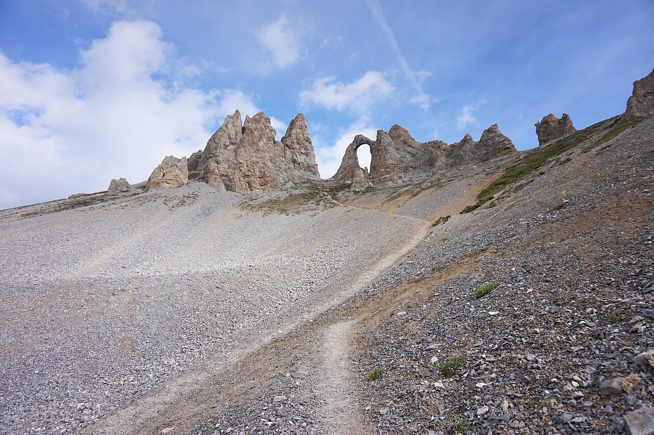 L Aiguille Percee est une formation rocheuse iconique situee au-dessus de la station de Tignes en Savoie, a 2748 metres d altitude. Cette aiguille de schiste presente une arche naturelle spectaculaire perforant la roche, visible depuis la station et les pistes. Le trou dans la roche resulte de l erosion differenciee des couches geologiques. L acces se fait par les remontees mecaniques ou par randonnee depuis le lac de Tignes. Le site offre un panorama exceptionnel sur le massif de la Vanoise et la Grande Motte. En ete, l Aiguille Percee est un objectif de randonnee apprecie des familles. Les photographes viennent capturer les jeux de lumiere a travers l arche. En hiver, le secteur est accessible a ski et offre des vues sur le domaine de l Espace Killy. Le site symbolise Tignes et apparait sur de nombreuses communications de la station. C est un lieu emblematique de la haute Tarentaise.